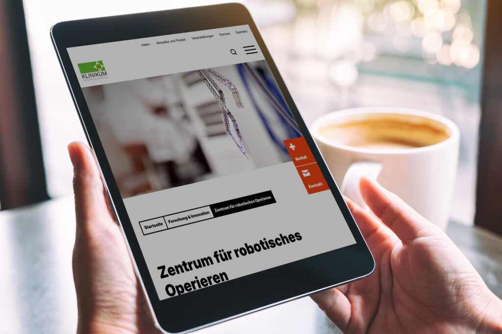 Das Klinikum Aschaffenburg setzt seit Jahren auf innovative medizinische Verfahren und intensive Forschungsarbeit. Im Rahmen des Relaunches wurde der Bereich „Innovation und Forschung“ nicht nur neu positioniert, sondern auch kommunikativ hervorgehoben. Wir haben diesen Bereich inhaltlich aktualisiert, übersichtlich strukturiert und mit frischen Gestaltungselementen in den Webauftritt integriert. So wird der Anspruch der Klinik, stets am Puls der Zeit zu arbeiten und medizinische Fortschritte aktiv voranzutreiben, klar und ansprechend sichtbar.